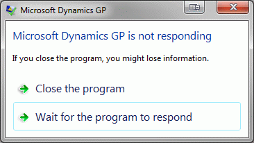 So, how can I tell that Microsoft Dynamics GP is still running and that I should just “Wait for the program to respond”.