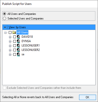 Runtime Execute, SQL Execute and .Net Execute can now control the users and/or companies a script is published to.